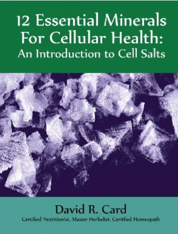 There are a number of cell salt combinations you can put together to support the specific needs of your body. These salts provide tools the body needs for healing. An easy to read introduction to cell salts has been written by David R. Card, homeopath and nutritionist. Check out the pocket guide, 12 Essential Minerals for Cellular Health, to learn more about both the internal and external therapeutic uses of cell salts.